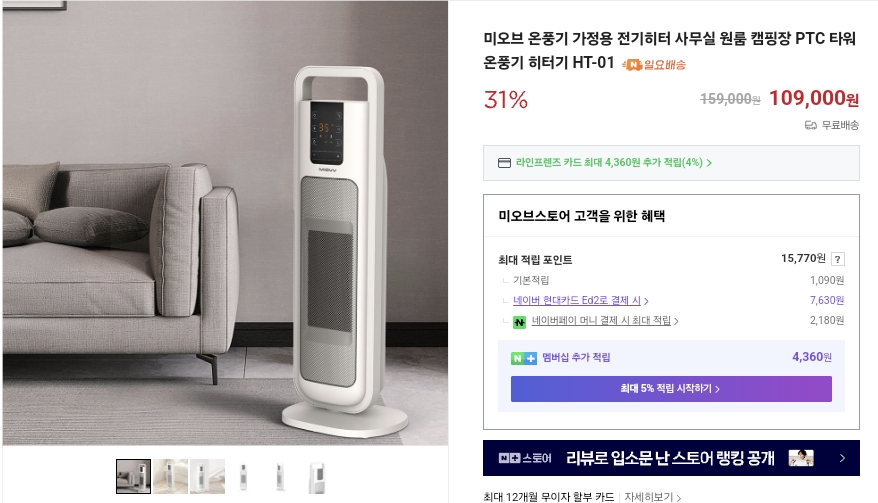 전기 온풍기는 전기세를 무시하지 못하는데요 미오브는 에너지 소비 효율이 1등급이라고 합니다
